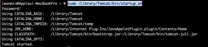 sudo chown -R <맥북 user id> /Library/Tomcat