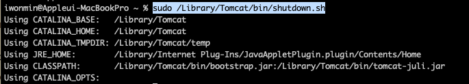 아래 스크립트를 실행하여 톰캣 서버를 종료합니다.