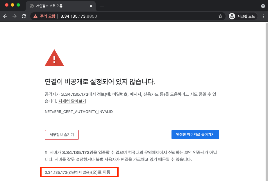 웹브라우저를 통해 https://<EC2-EIP>:8850 로 접속합니다.