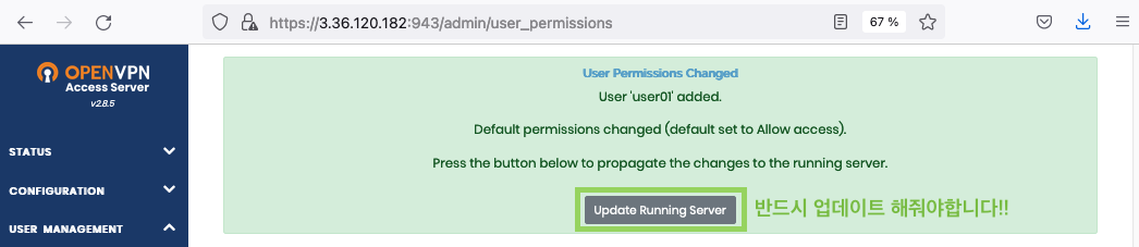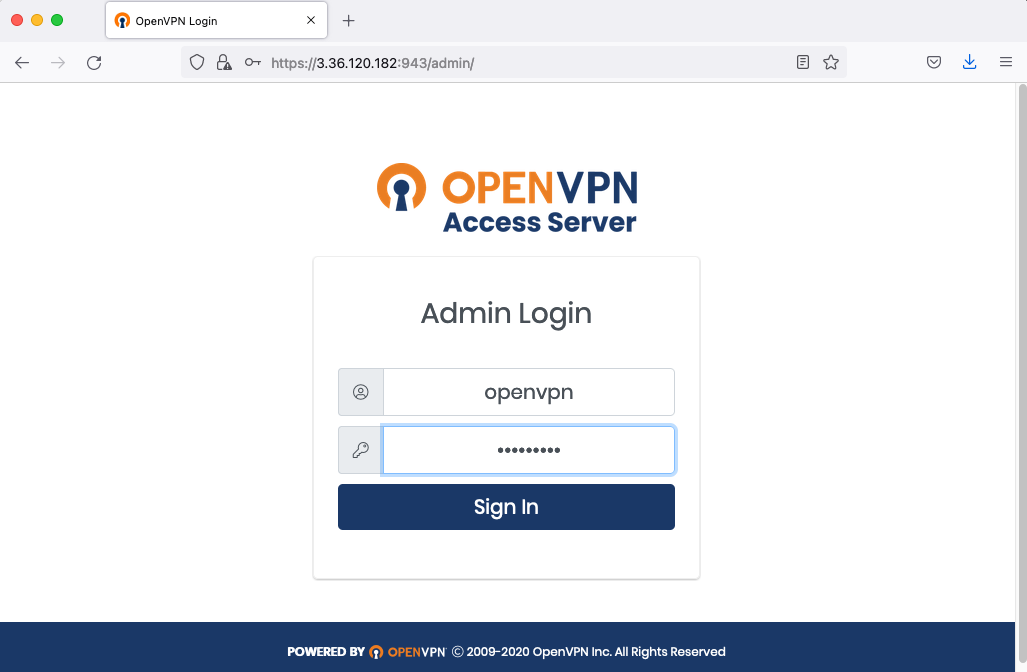 Admin UI: https://3.36.120.182:943/admin
