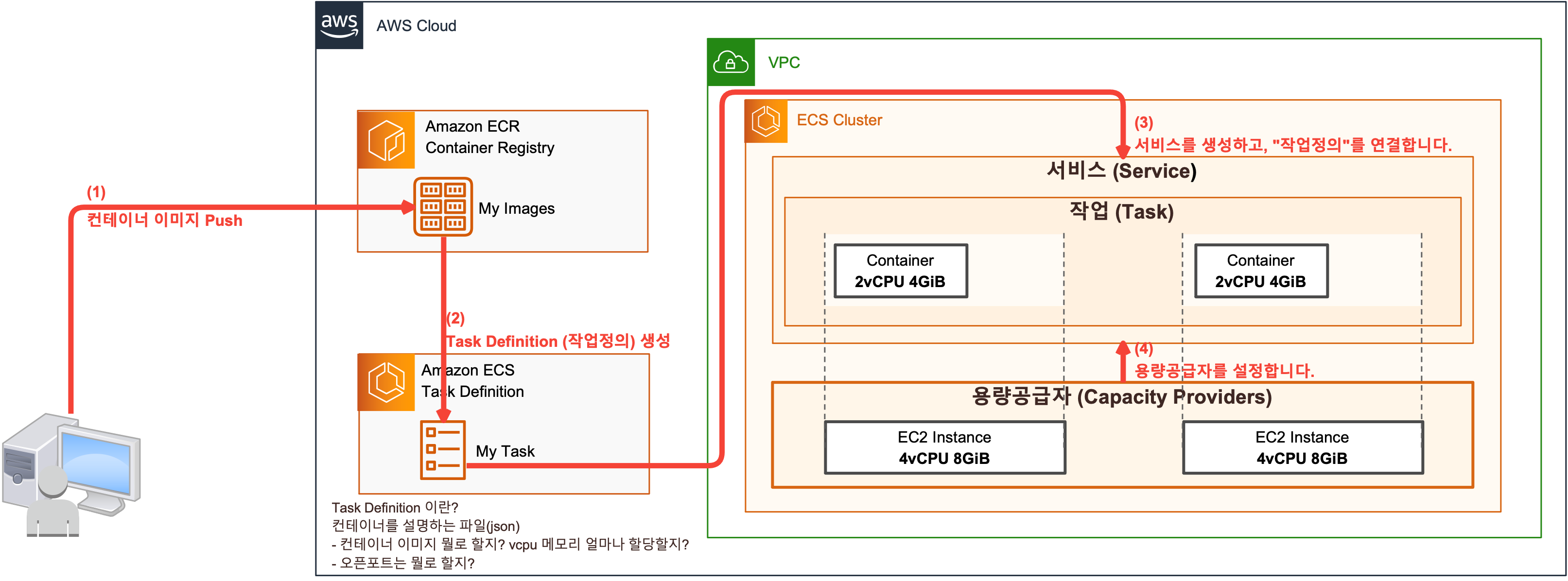ECS를 생성하고 싶어요, 어떤 순서로 하나요?