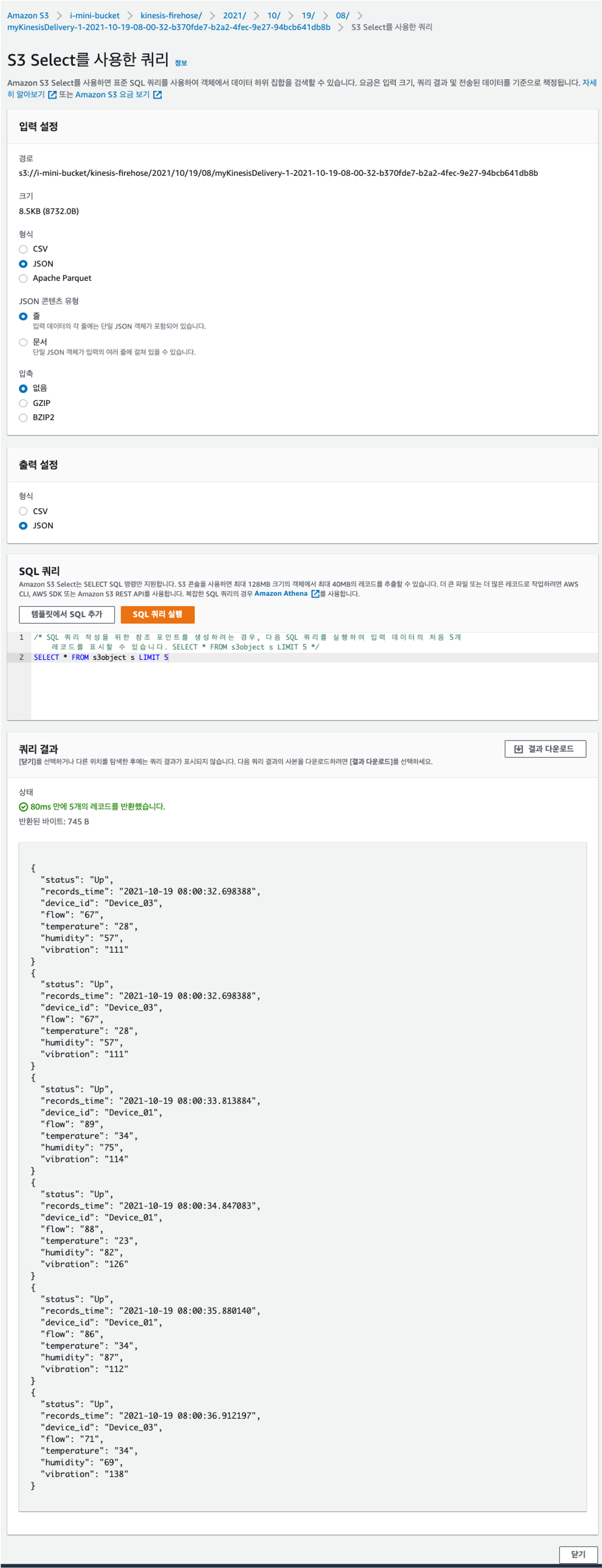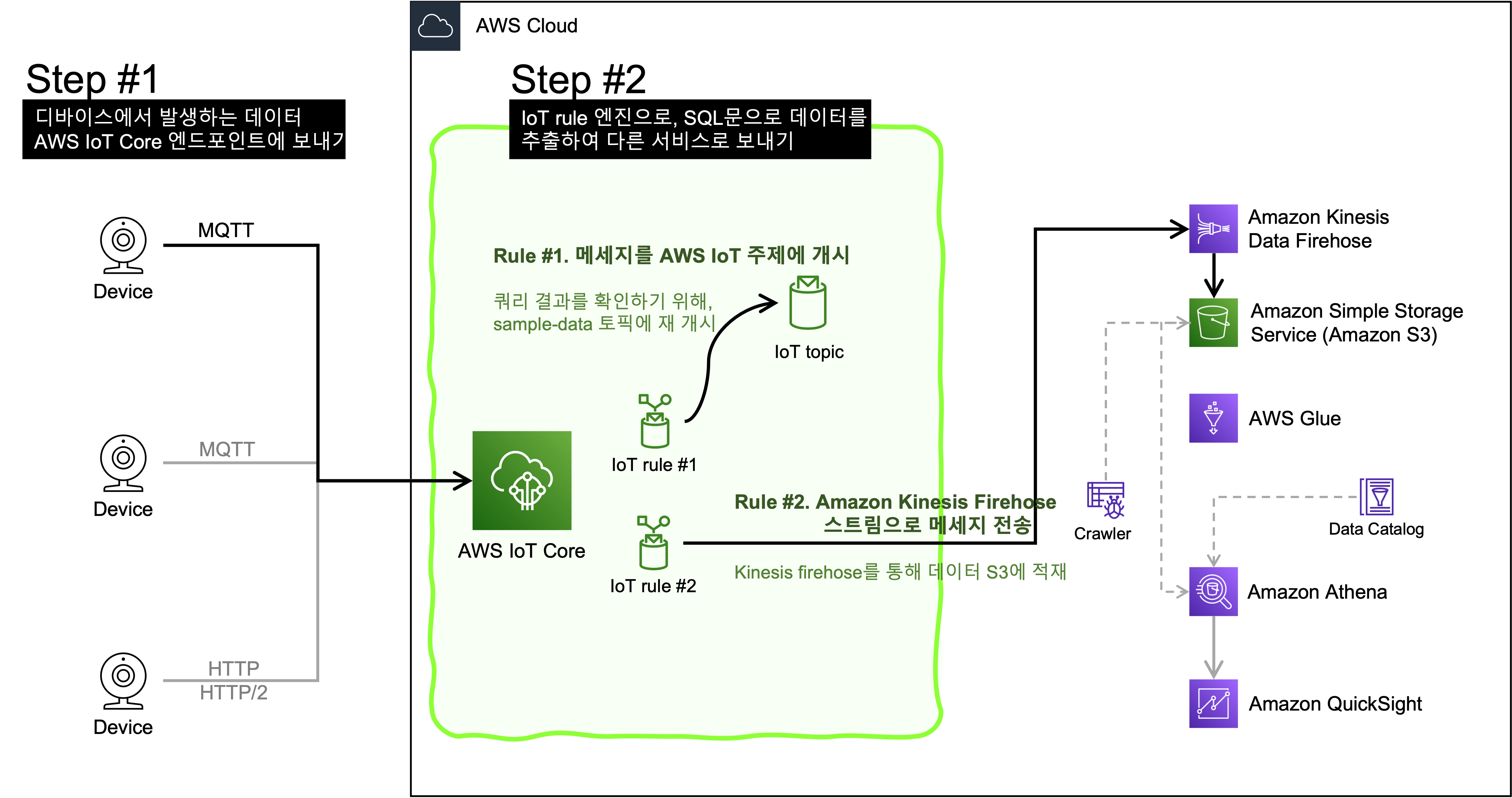 [ Device -----> IoT Core -----> Kinesis Firehose -----> S3 ] 구성이니까,