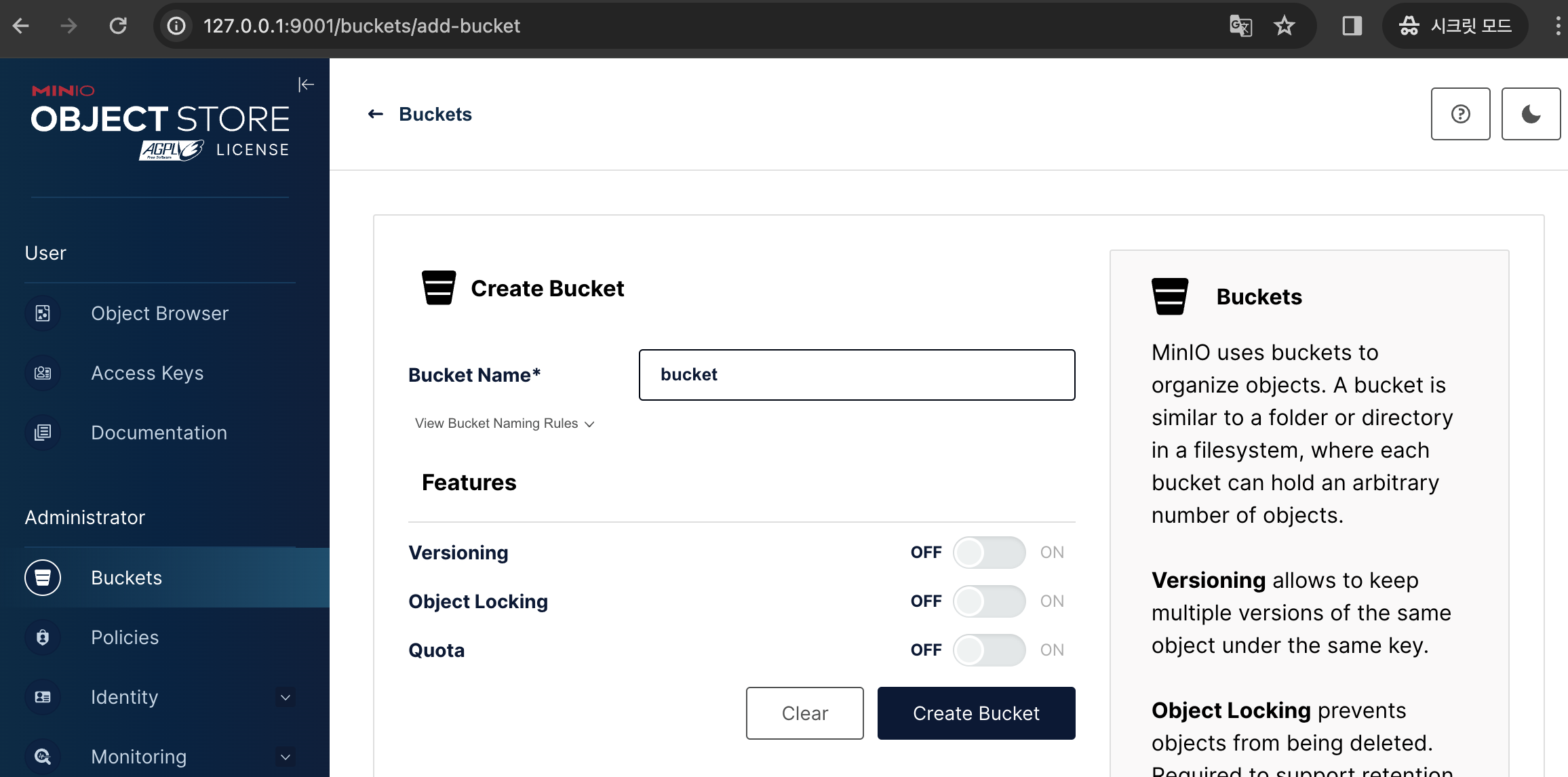 MINIO_ROOT_USER=admin MINIO_ROOT_PASSWORD=password ./minio server ./minio-dir --console-address ":9001"