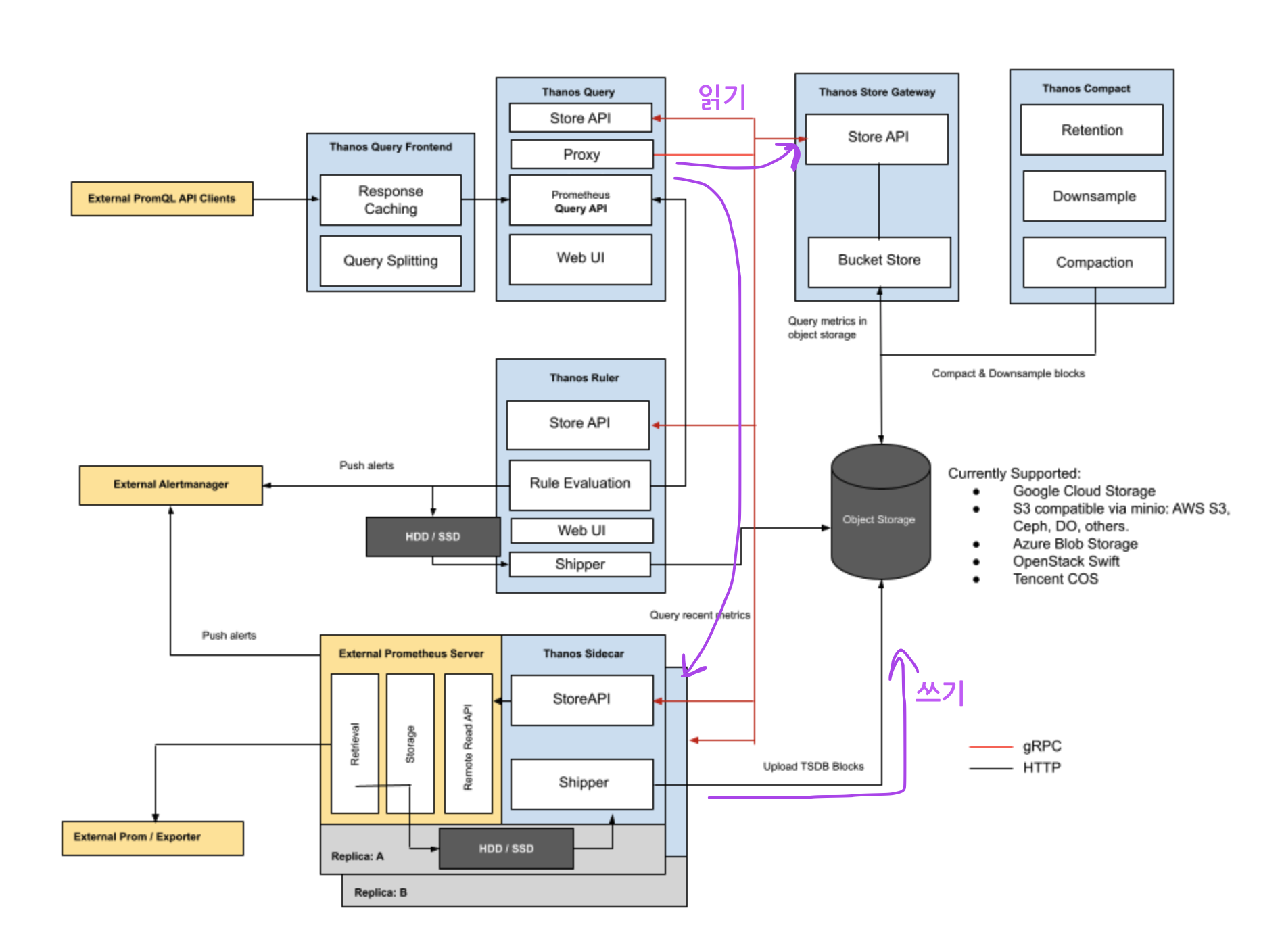 아래 그림은 PrometheusThanos 관련 아키텍쳐인데, 여기 안에 Operator, Exporter, Adapter가 모두 쉽게 표시되어있어 가져왔다.