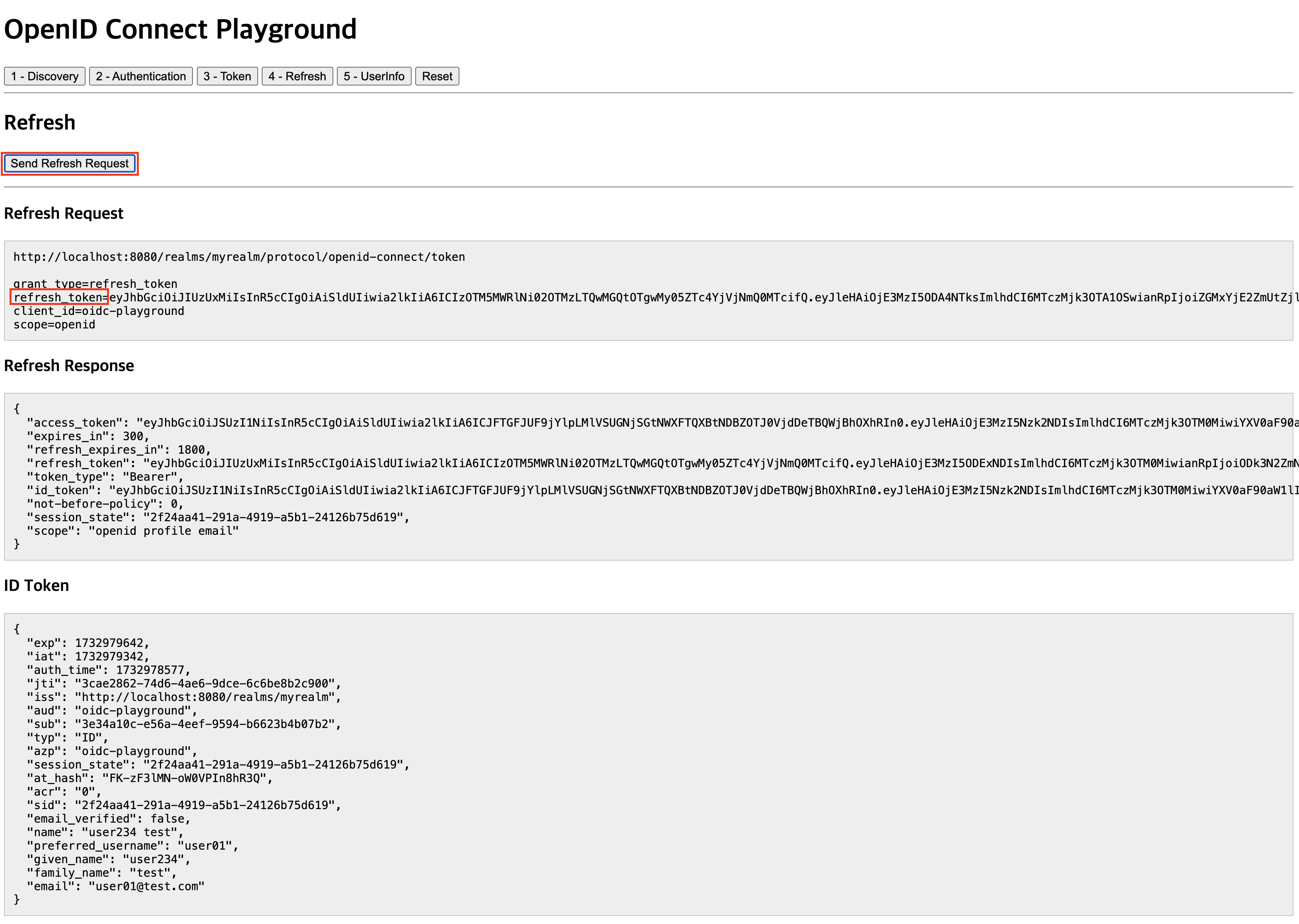 테스트 페이지 (http://localhost:8000)에서 4 - Refresh를 클릭한다.
