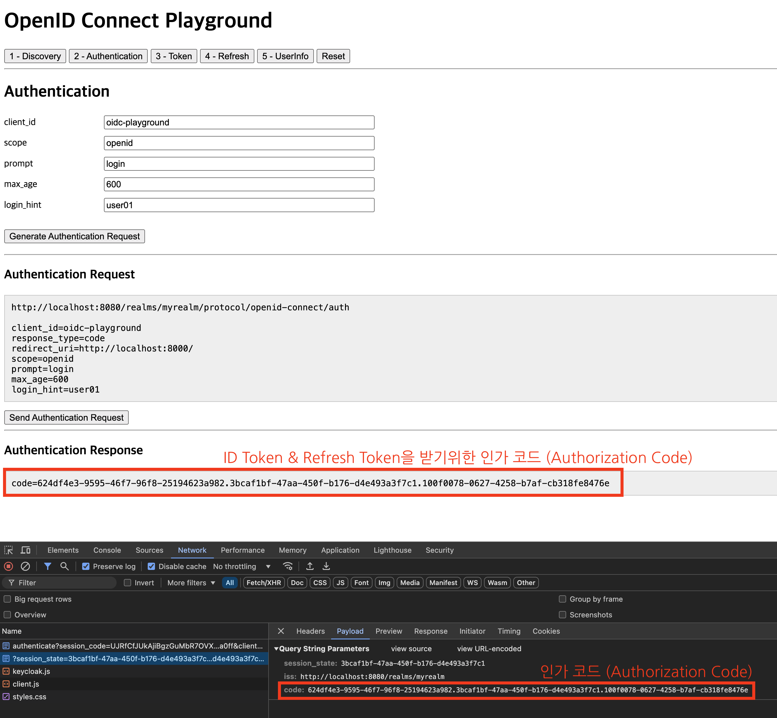 인가코드(Authorization code)는 중간교환수단으로, 실제 리소스 접근권한은 ID Token이 가지고 있고, OIDC 사용자 인증(Authentication) 과정은 Authorization Code를 통해 ID Token을 발급받음으로써 완성된다. |