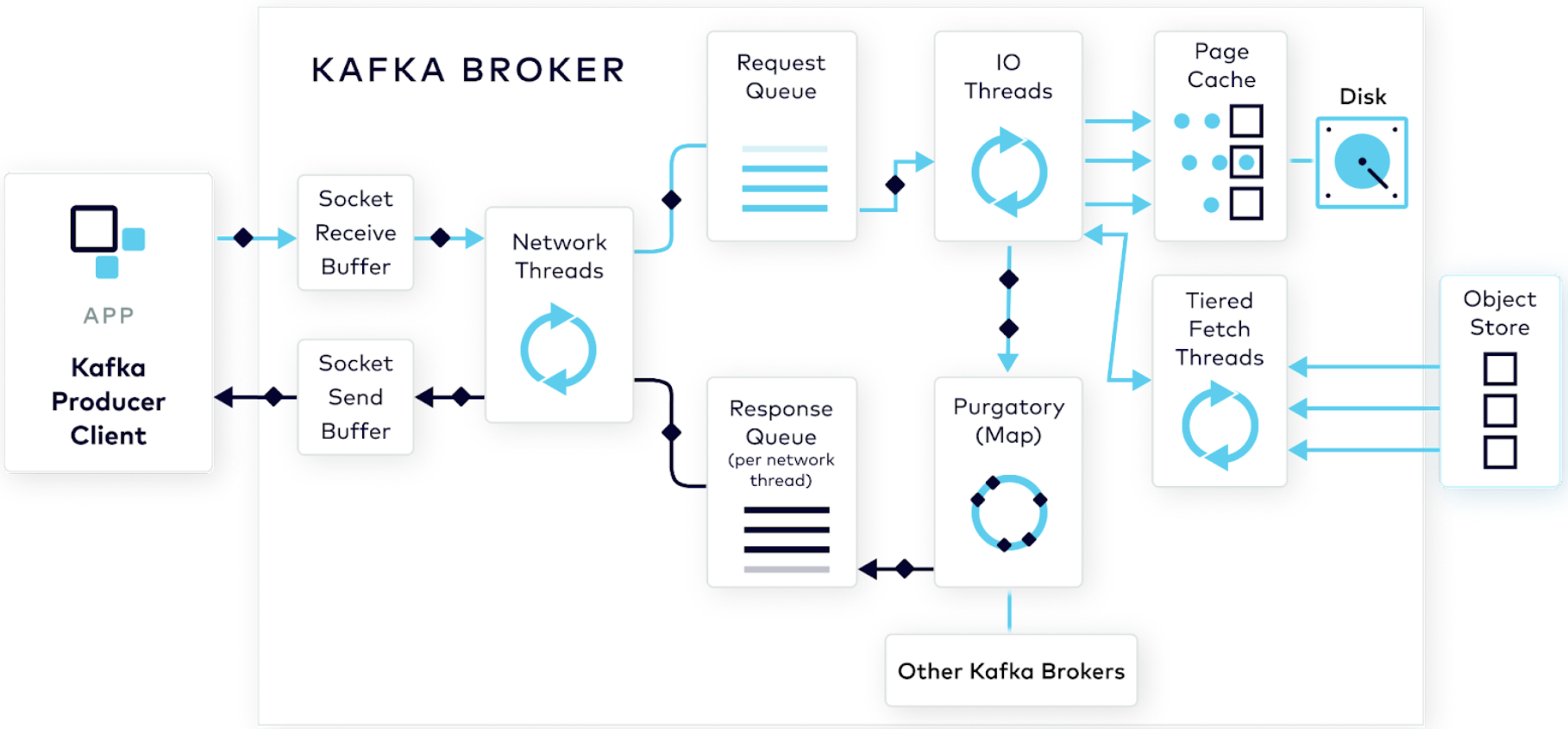 프로듀서는 특정 토픽에 전송하고, 카프카 브로커가 이를 파티션단위로 저장한다.