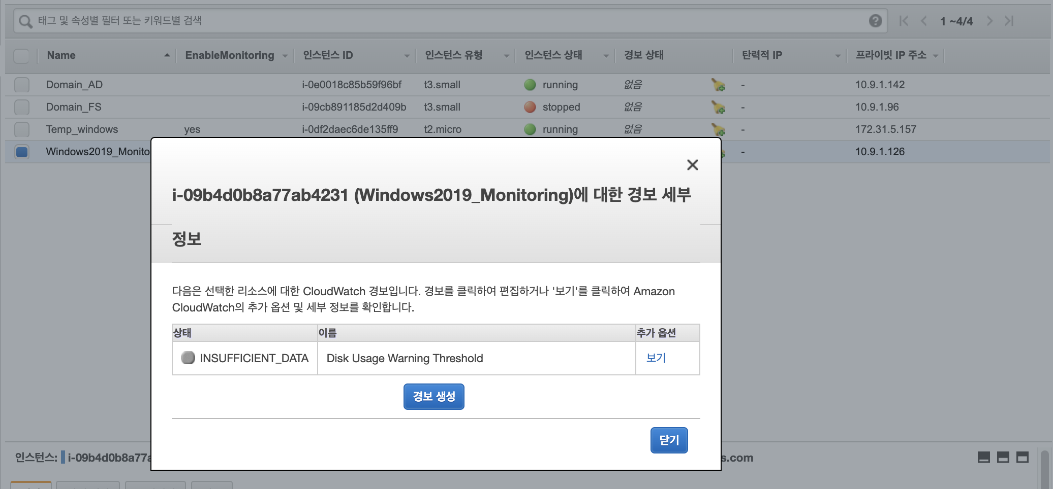 모니터링이 필요한 모든 인스턴스와 Temp_windows 인스턴스의 태그 설정이 올바르게 되었는지 확인합니다.