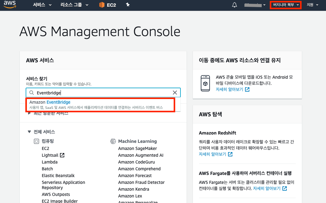 자, 이번에는 Amazon EventBridge 콘솔로 이동합니다.