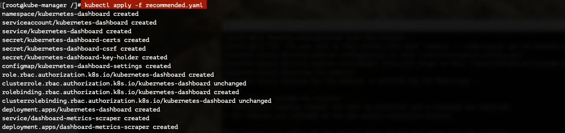 [root@kube-manager /]# kubectl apply -f recommended.yaml