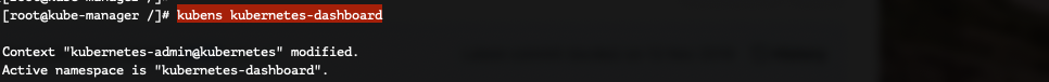 [root@kube-manager /]# kubens kubernetes-dashboard