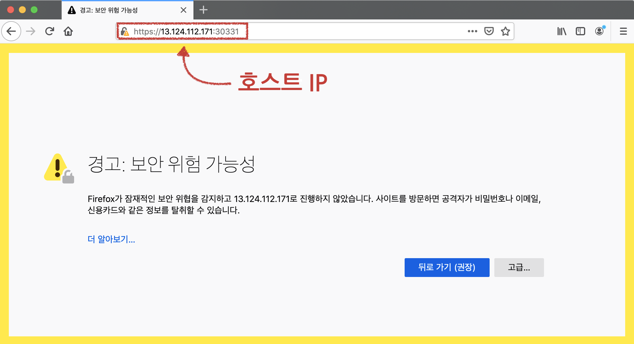 저같은 경우는 크롬이나, 사파리(MAC사용자입니다)는 아예 접속이 불가했고, FireFox를 다운받아 아래 캡쳐 사진처럼 위험을 감수하고 접속으 눌러 겨우 들어왔습니다 ㅠㅠㅎ