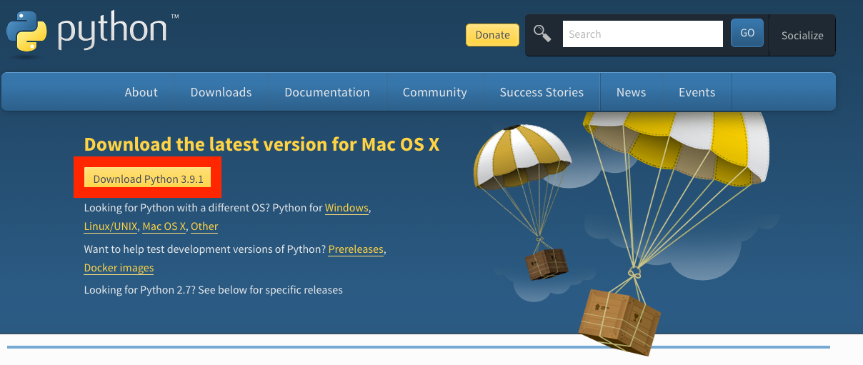 파이썬 공식 홈페이지에 접속합니다. (https://www.python.org/downloads/)