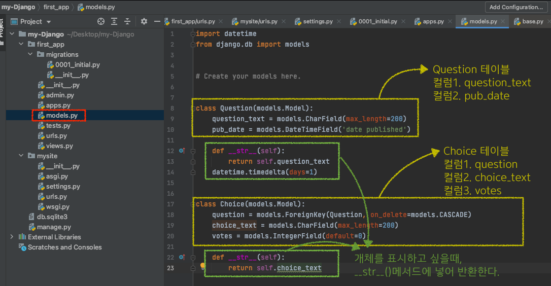 이제 first_app/models.py에 데이터의 스키마가 정의 되었다는것을 메인 프로젝트에 알려줍시다.