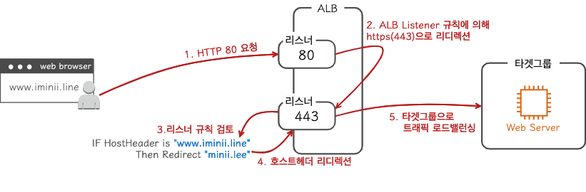 http 80포트로 들어온 트래픽은 규칙에 의해 https 443포트로 리디렉션 됩니다.