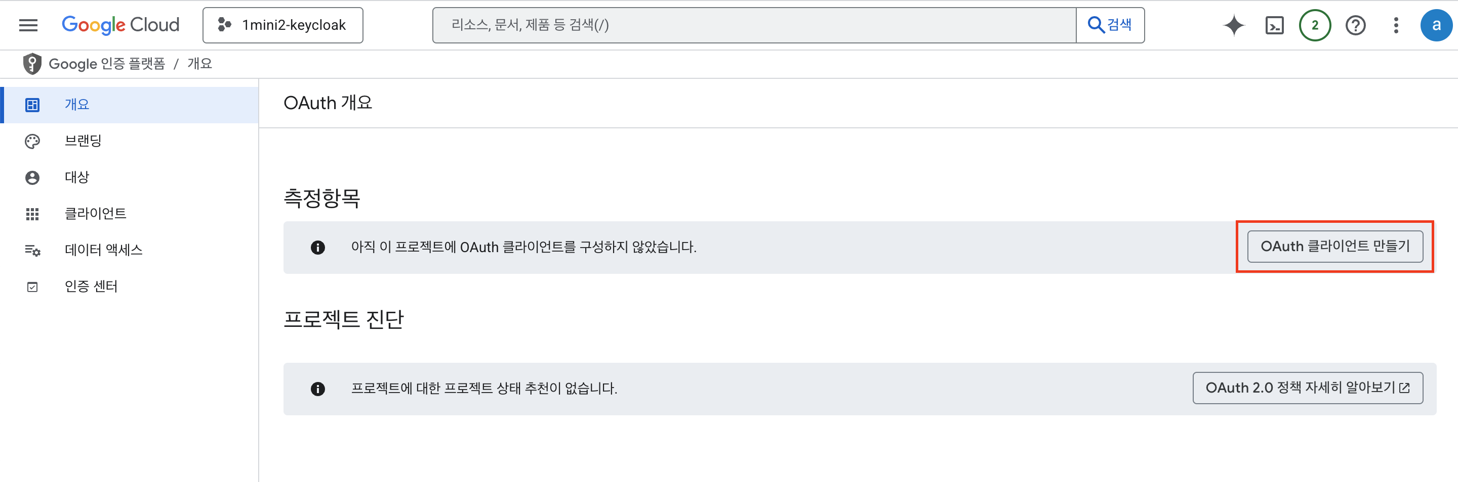 새로운 프로젝트를 생성했다면 Google 인증 플랫폼(https://console.cloud.google.com/auth/overview)을 구성 해야한다.