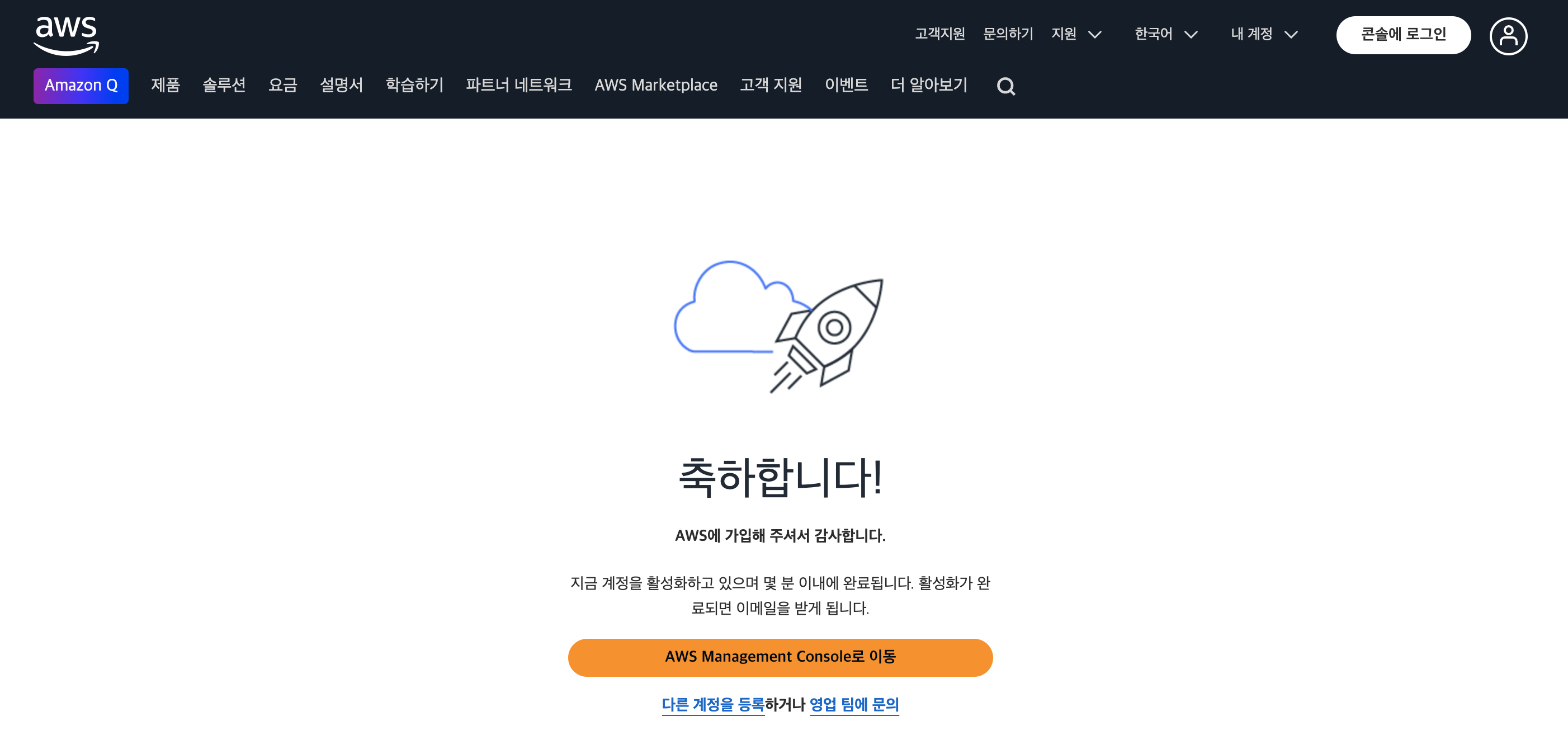 로그인 후 https://us-east-1.console.aws.amazon.com/iam/ 에서 루트사용자 MFA를 등록하기를 강력 권장함