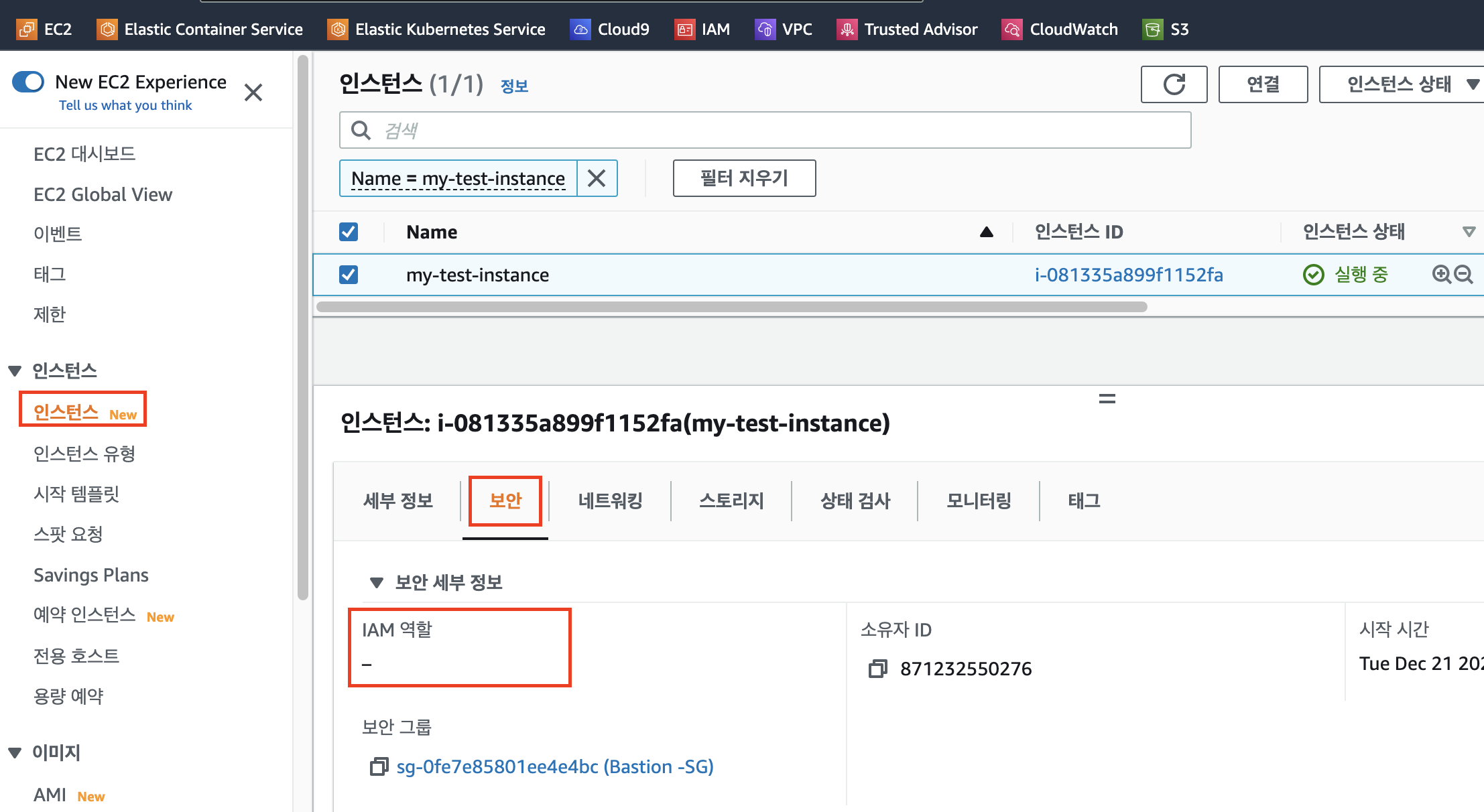 안녕하세요.😊 디스크 사용량 경보를 받을 수 있도록,설정해보겠습니다. [순서] 1. EC2에 CloudWatch 사용할 수 있는 권한 있는지 확인 & 설정 2. EC2에 amazon-cloudwatch-agent 설치 3. CloudWatch 콘솔에서 지표 확인 후 경보 설정 1. EC2에 CloudWatch 사용할 수 있는 권한 있는지 확인 & 설정 먼저, Ec2에 역할이 설정되어있는지 부터 확인합니다. EC2콘솔(https://console.aws.amazon.com/ec2/)에 접속합니다. 인스턴스 목록에서 설정하려는 인스턴스를 클릭합니다. 하위탭이 활성화 되면, 보안탭에서 IAM 역할을 확인합니다. IAM 역할이 없는경우 ⬇여기⬇를 클릭하여 역할을 할당합니다. 더보기 https://console...