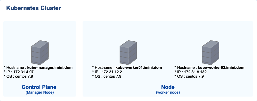 제가 구성할 쿠버네티스 클러스터 구성도입니다. 여기에서 보면 Control Plane (Manager Node)가 보시시죠?! 이번 단게에서는 Control Plane을 구성해보도록 하겠습니다. 3개의 노드 중 매니저 노드 하나에서만 실행합니다. 고고!! 명령어는 아주 간단합니다. kubeadm init 이후 옵션값들을 넣어주면 됩니다. 명령어를 실행해봅시다! 공식홈페이지링크 kubeadm init --apiserver-advertise-address= --pod-network-cidr= 저는 Manager Node IP주소가 10.0.1.10 입니다. 이 부분을 환경에 맞춰 IP 변경해서 작성하세요 :) [root@kube-manager /]# kubeadm init --apiserver-adverti..